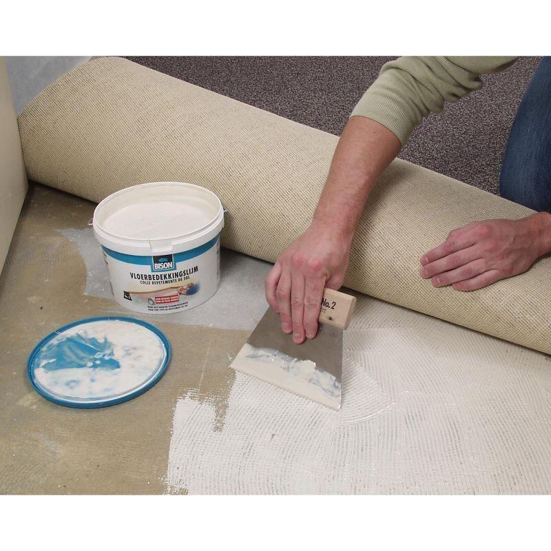 Pentru aplicare, distribuiți adezivul uniform pe suprafața pregătită (curățată, uscată și fără urme de grăsime) folosind o spatulă zimțată Bison nr. 2.Plasați materialul dorit – linoleum, mochetă sau placaj de plută – peste adezivul proaspăt aplicat în cel mult 15 minute. Apoi apăsați ferm sau rulați cu o rolă pentru o fixare bună.Poziția poate fi ajustată în primele 15 minute după aplicare.Suprafața devine rezistentă la presiune după aproximativ 24 până la 48 de ore.