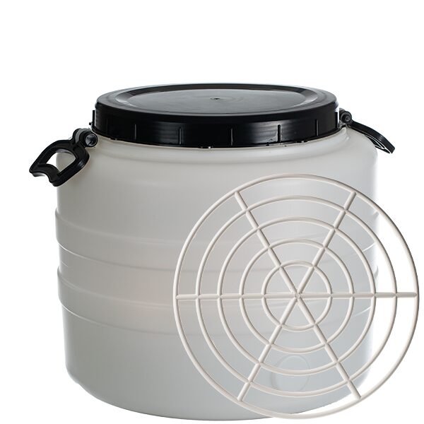 Butoi 30L Alb cu Mâner și Presator – Ideal pentru Murături, Vin sau Țuică