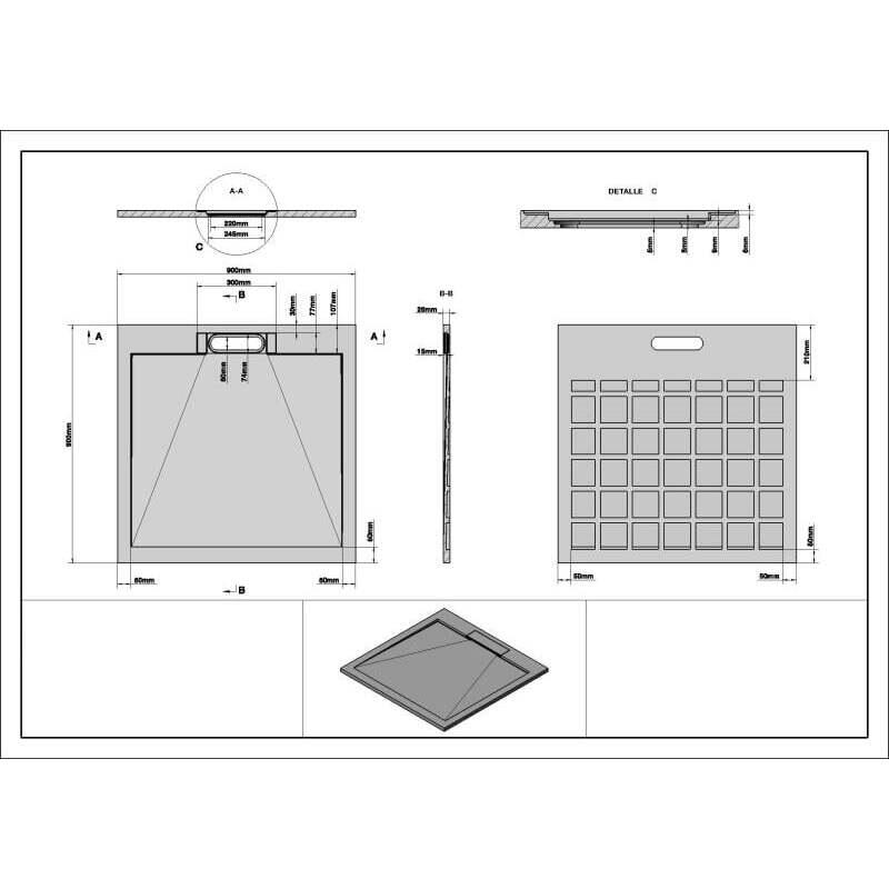 ✔ Dimensiuni: 900 x 900 x 25 mm – potrivită pentru spații de duș compacte