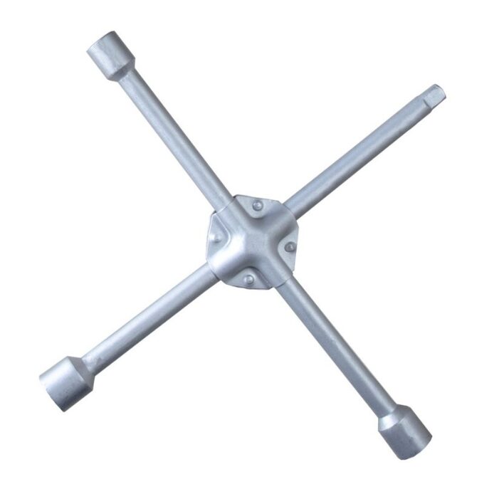 Cheie cruce pentru roti, finisare crom-satin, brate nituite.