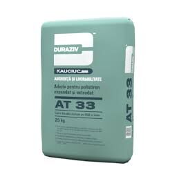 Domeniu de aplicare: DURAZIV AT 33 este un adeziv pentru lipire și șpăcluire a plăcilor termoizolante în cadrul sistemului de termoizolaţie ETICS cu plăci de polistiren expandat EPS, grafitat, extrudat XPS sau vată minerală densă. Se poate face termoizolare atât pe pereţi exteriori, cât şi pe pereţi interiori – pe suport mineral sau din lemn/OSB, dacă accesul prin exterior este imposibil.