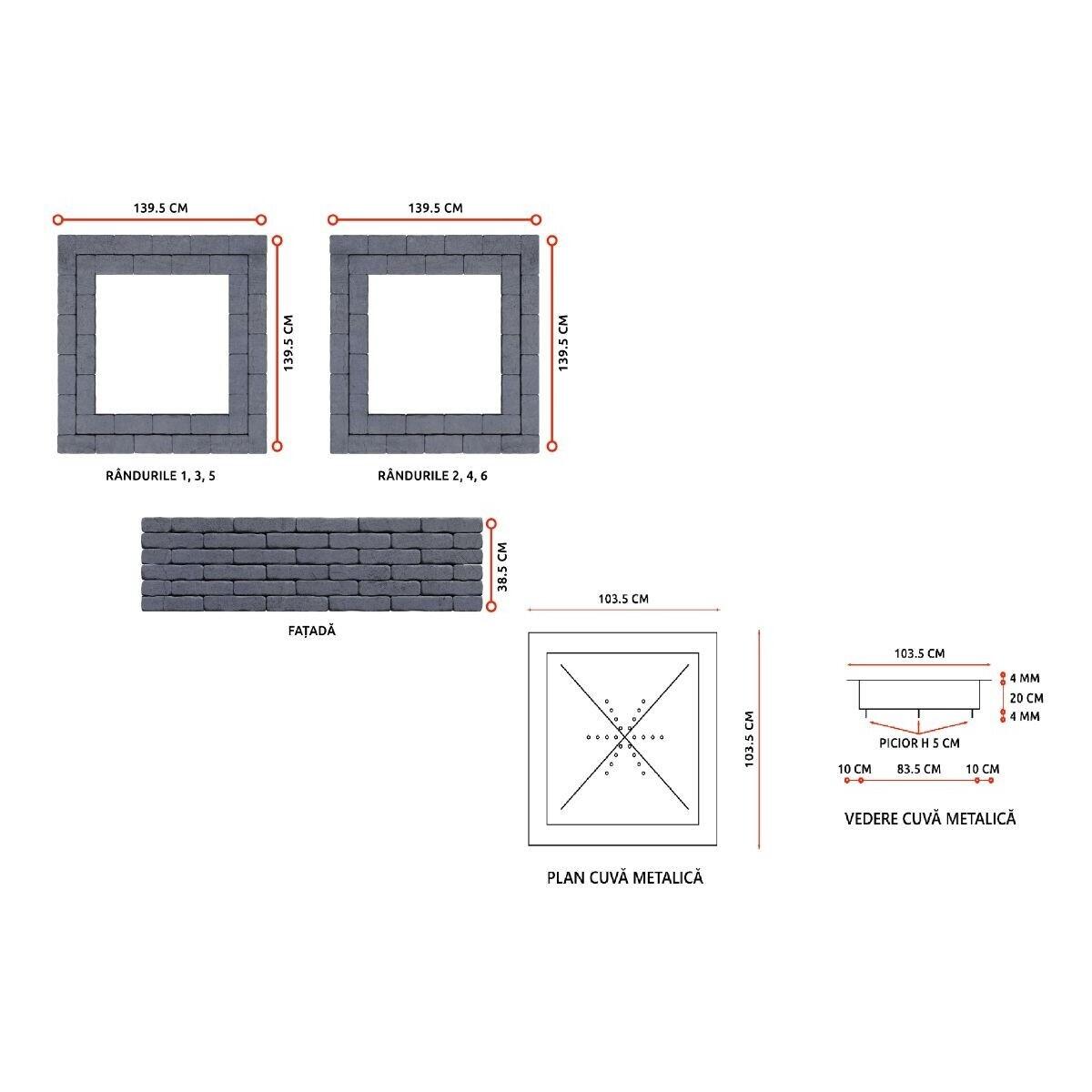 In serile petrecute alaturi de prieteni, focarul poate deveni punctul de atractie. Folosit pentru un foc viu, fie ca bar sau ca masa, ne strangem in jurul lui sa depanam amintiri, sa ne facem planuri de vacanta sau, pur si simplu, sa ne bucuram de viata. Realizat din pavele din beton vibropresat cu aspect antichizat, este prevazut cu o cuva metalica speciala, rezistenta la foc intens.Pachetul contine toate elementele necesare montajului.