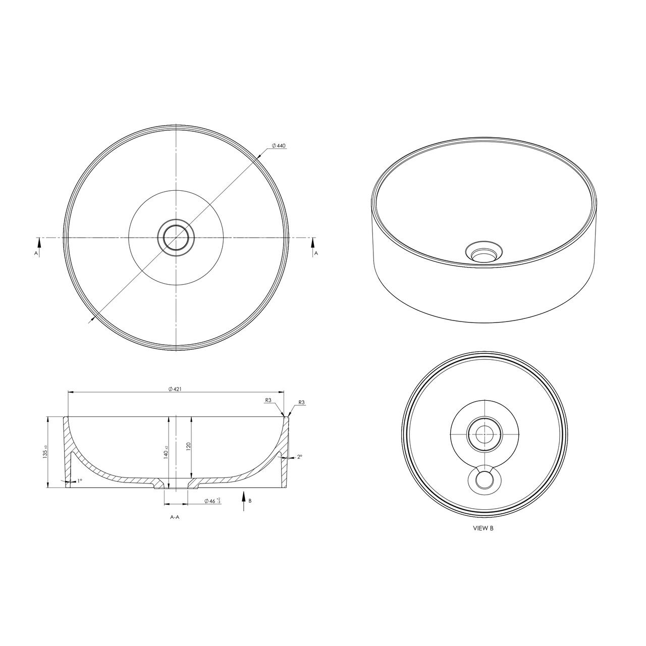 Lavoarul rotund SanDonna Circle, cu o singură cuvă adâncă de 135 mm și dimensiuni de 440×440 mm, aduce un plus de eleganță și stil băii tale.