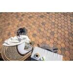Acest model placut si vesel insufla o senzatie de prospetime spatiilor amenajate. Suprafata pavelelor, in tonurile ruginii ale toamnei, se obtine printr-o tehnologie de colorare speciala, astfel incat fiecare pavea este unica din punct de vedere al coloritului, datorita mixului aleatoriu de distribuire a nuantelor.Forma naturala de floare confera amenajarilor un aspect vesel, creativ si ospitalier. Culoarea si forma il recomanda pentru stilul de amenajare Iberic.