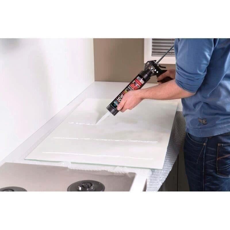 Lipire:Este potrivit pentru a lipi o varietate largă de materiale precum: sticlă, piatră (naturală sau nu), beton, obiecte decorative, mase plastice, lemn, PAL, placaj HPL (tip Trespa), metale precum fier, aluminiu, zinc, oțel inoxidabil, oțel obișnuit, precum și plăci ceramice, plută și oglinzi.