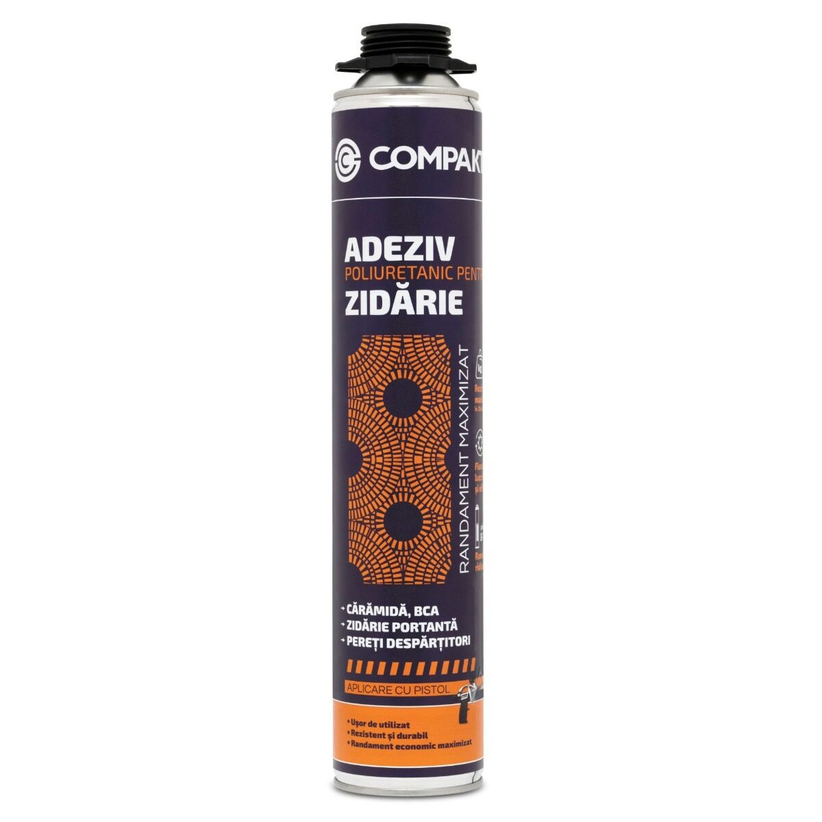 Adezivul poliuretanic Compakt pentru zidărie este un produs monocomponent, caracterizat prin rezistență mare și întărire rapidă. Este destinat realizării pereților interiori și exteriori cu rosturi foarte subțiri și este recomandat atât pentru zidirea pereților portanți, cât și pentru pereții despărțitori.