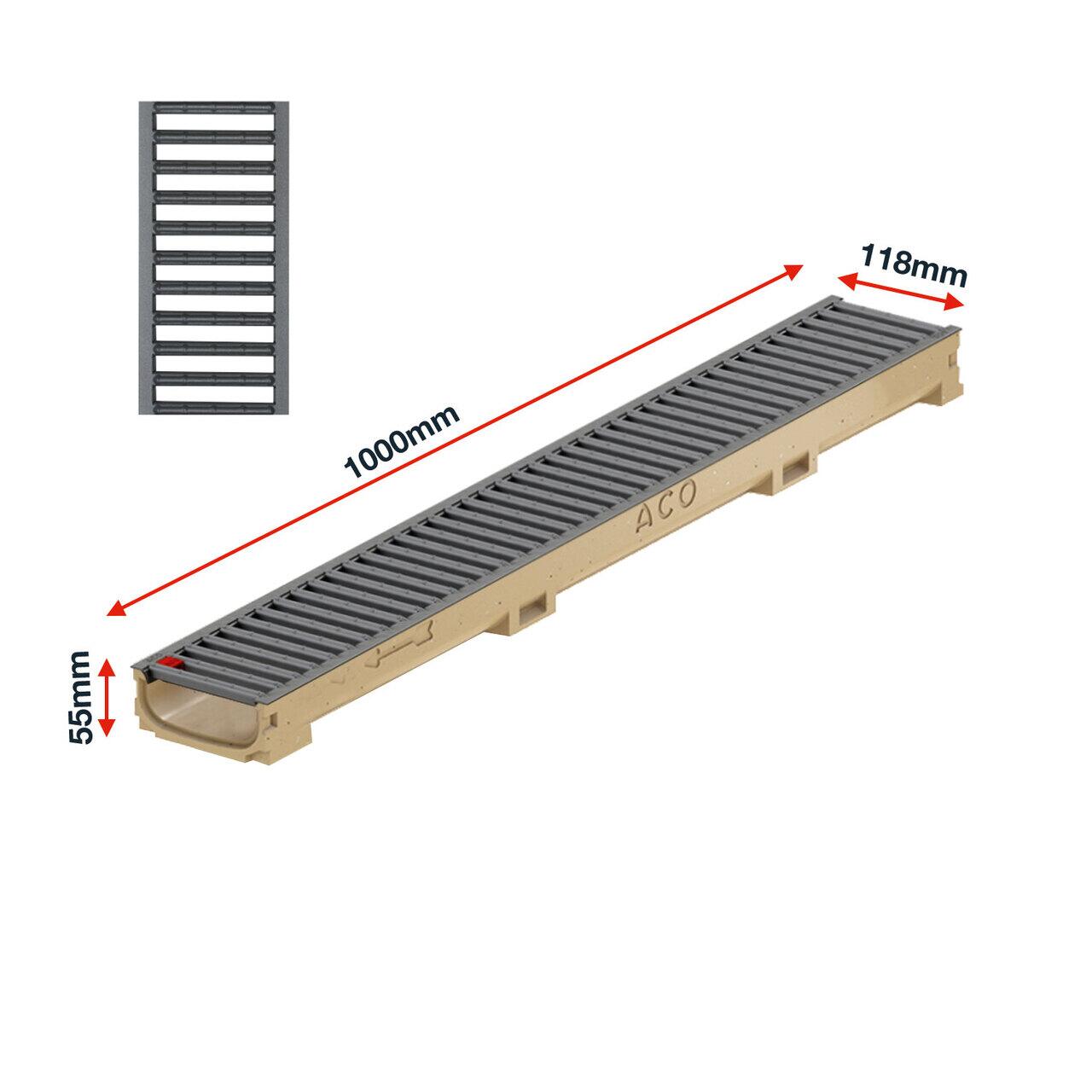 Rigola ACO Self Euroline 60 din beton cu polimeri, gratar nervurat din otel zincat antracit, lungime 100cm, A15