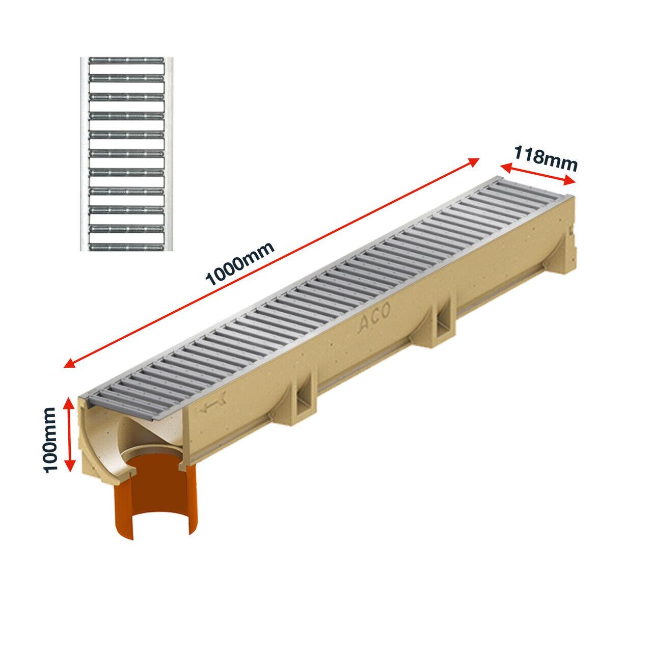 Rigola ACO Self Euroline din beton cu polimeri, gratar nervurat din otel zincat natur, lungime 100cm DN100