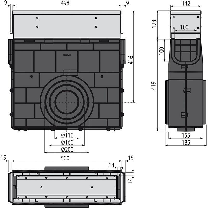 RIGOLA COLECTARE FANTA ACCES ASIMETRIC 100MM OTEL INOXIDABIL