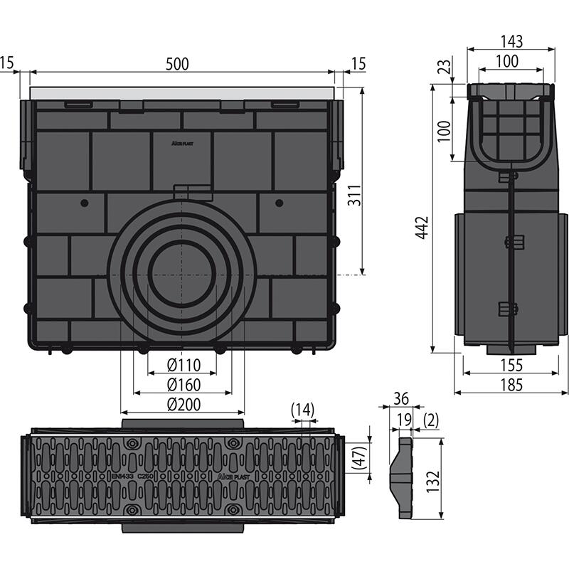 Rigolă de colectare pentru AVZ103 cu ramă metalică și grătar din material compozit, clasa C250
