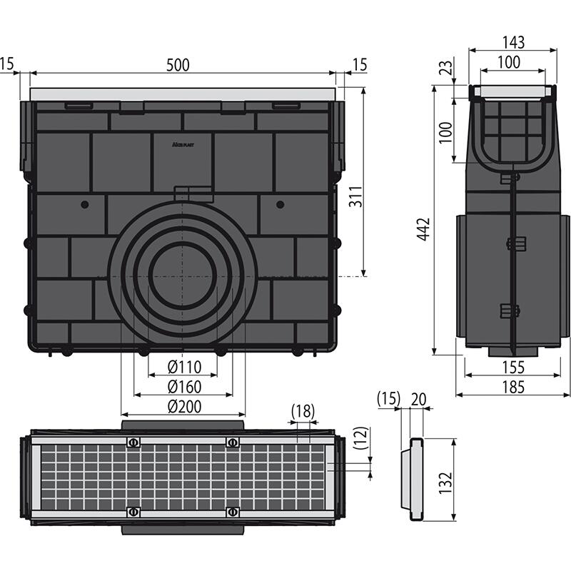 Rigolă de colectare pentru AVZ103 cu ramă metalică și grătar galvanizat, clasa C250