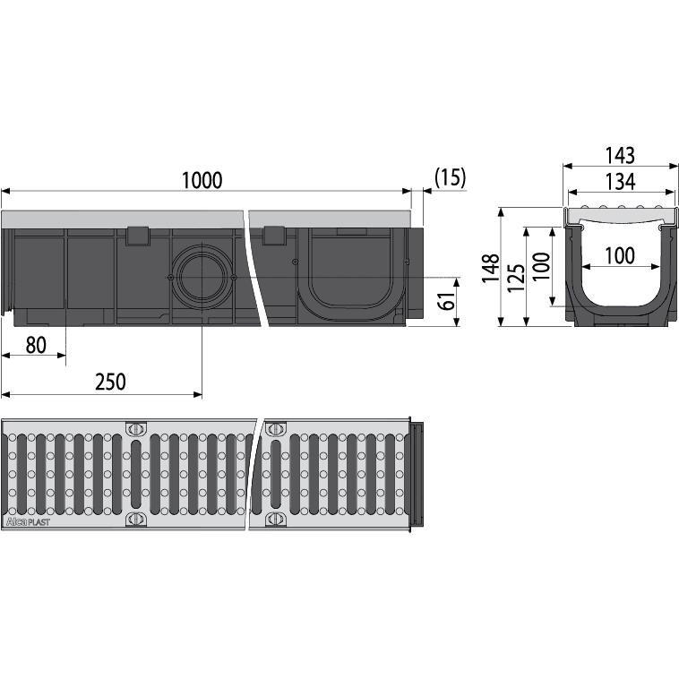 RIGOLA EXT 100MM RAMA GALVANIZATA GRATAR FONTA D400