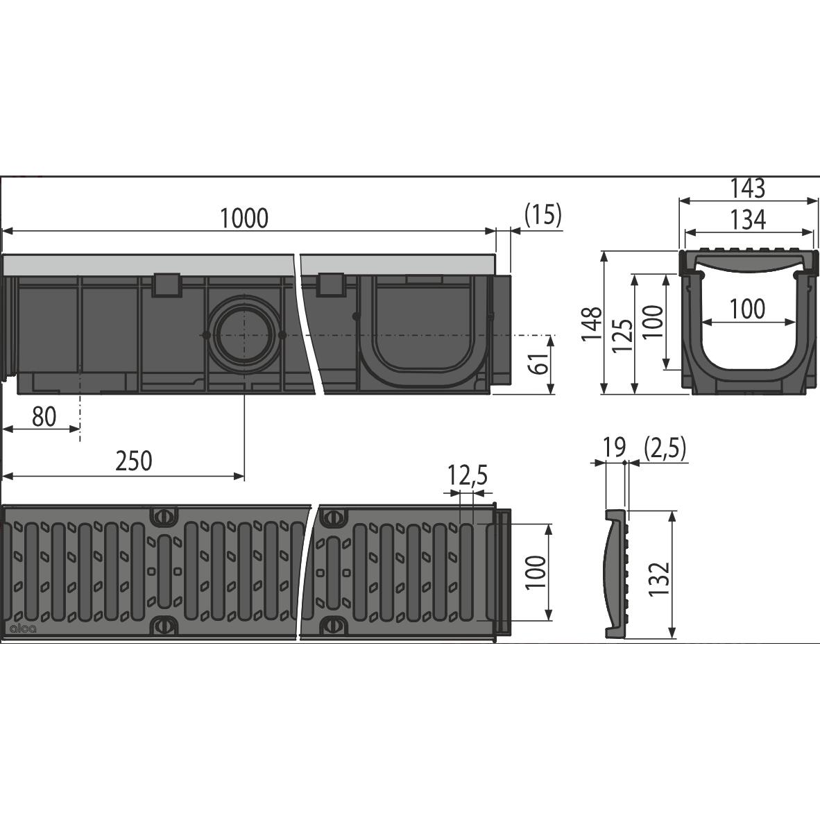 RIGOLA EXT 100MM RAMA METALICA GRATAR FONTA C250