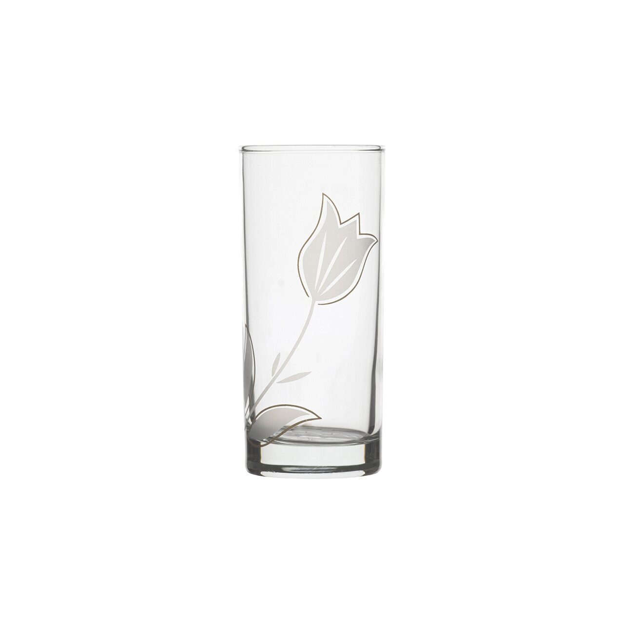 Realizate din sticlă transparentă de calitate, aceste pahare au o capacitate generoasă de 270 ml, fiind versatile pentru apă, sucuri, vinuri lejere sau cocktailuri. Decorul tulip adaugă un element vizual plăcut, transformând simpla servire într-o experiență estetică.