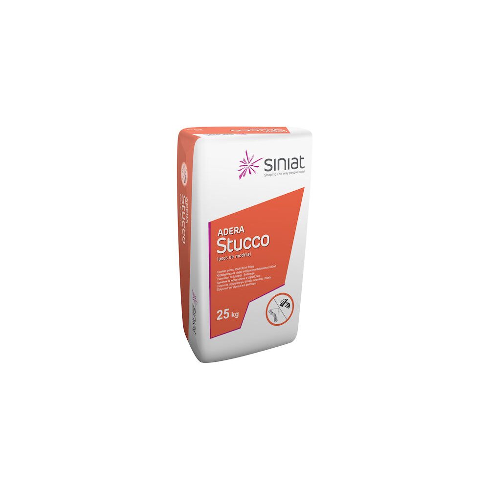 ADERA Stucco este un ipsos sub forma de pulbere foarte fina, de culoare alba, avand ca si component principal sulfatul de calciu semihidrat. Produsul este obtinut dintr-o materie prima selectata adecvat. Prin presarare in apa, se formeaza o pasta omogena cu timp de priza optim si lucrabilitate ideala. Dupa uscare suprafata obtinuta va fi rezistenta si durabila.