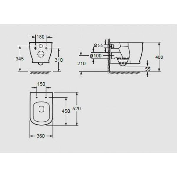 Dimensiunile generoase ale vasului WC CHARLTON rimless îl fac potrivit pentru o varietate de spații de baie, de la cele mai mici la cele mai mari. Forma ergonomică și contururile elegante asigură un confort optim în timpul utilizării, iar designul rimless și tehnologia de evacuare eficientă a apei garantează o igienă impecabilă și un nivel redus de consum de apă.